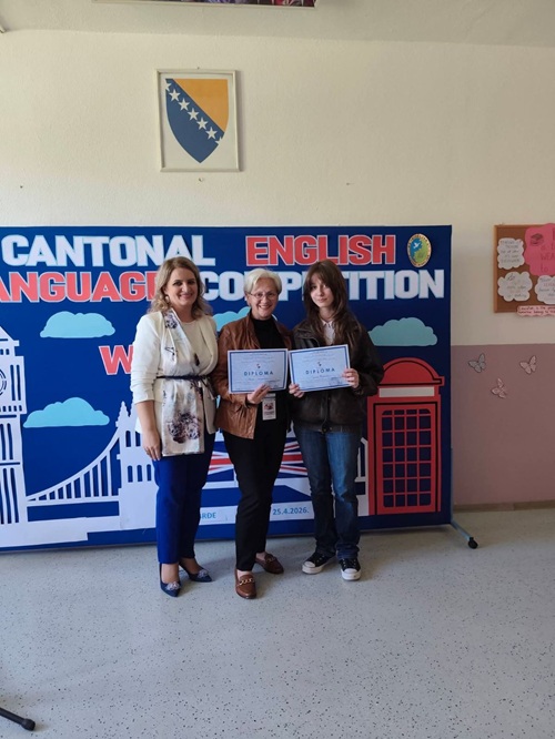 Učenica naše škole, Lena Beganović u subotu 25. aprila 2026. godine učestvovala je i osvojila prvo mjesto na kantonalnom takmičenju iz engleskog jezika!