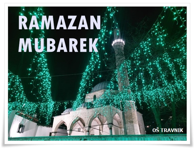 Svim učenicima i njihovim roditeljima/starateljima, zaposlenima u kolektivu OŠ Travnik, svim našim poslovnim partnerima i prijateljima, kao i svim posjetiocima naše web i facebook stranice islamske vjeroispovijesti želimo da predstojeći mubarek mjesec Ramazan provedete u ibadetu, zdravlju i radosti sa svojim najmilijima i da sretno dočekate dane Ramazanskog bajrama.